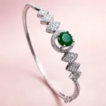 Be the first to review “Luxury Diamond Bracelet with Green Stone | Openable Silver Finish Bracelet for Women”