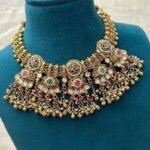 Be the first to review “Traditional Gold Finish Temple Necklace Set with Green Enamel, Pink Stones & Pearl Drops”